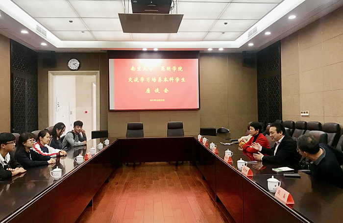 10月22日,开云官网校长黎素梅到南京大学仙林校区看望开云官网选派到南大交流学习的5名同学并召开座谈会。同学们先后汇报了近期在南京生活和学习的情况。看到同学们都很适应新的学习生活环境,黎素梅校长表示很欣慰,并鼓励各位同学要提高思想认识,尽快融入南大学习环境,感受南大良好学风,养成主动学习的习惯,争取把好的学风带回昆明,并祝福各位同学身体和学习共同进步。