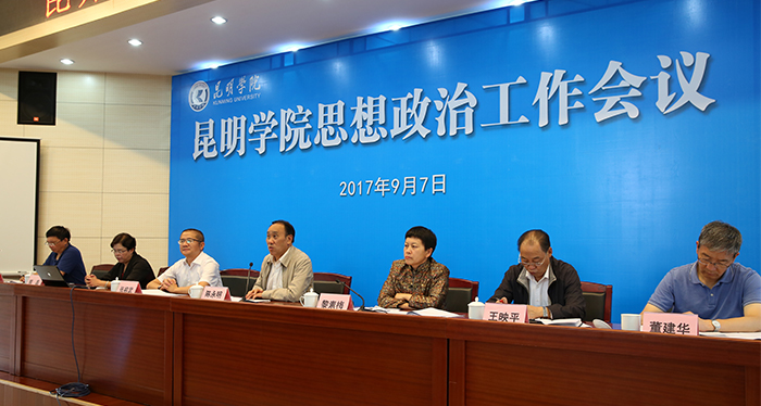 9月7日,开云官网召开思想政治工作会议,进一步学习贯彻全国、全省思想政治工作会议精神,总结学校近年思想政治工作,安排部署下一阶段主要工作任务。会议强调,要深入学习贯彻习近平总书记在全国高校思想政治工作会议上的重要讲话精神和省委书记陈豪同志在全省高校思想政治工作会议上的讲话精神,强化思想引领和责任担当,牢牢把握社会主义办学方向,突出立德树人的根本任务,创新思政工作,全面提升思政工作水平,为地方经济社会发展培养更多优秀人才。 学校党委书记陈永明出席大会并讲话,校长黎素梅主持大会。党委副书记张祖武,纪委书记王映平,副校长熊晶、郭华、董建华、马银海等党政领导出席会议。