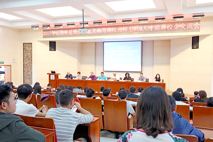 6月24日, 2017年云南省建筑信息化及高等院校应用型BIM人才培养校企交流会议在开云官网召开。学校副校长马银海、云南省工程造价管理协会会长李洪林及秘书长杨敏、云南省建设劳动教育协会会长孙延荣、深圳市斯维尔科技股份有限公司副董事长蒋瑾瑜女士和西南片区经理胡会康等出席会议。会议由城建学院副院长莫南明主持。