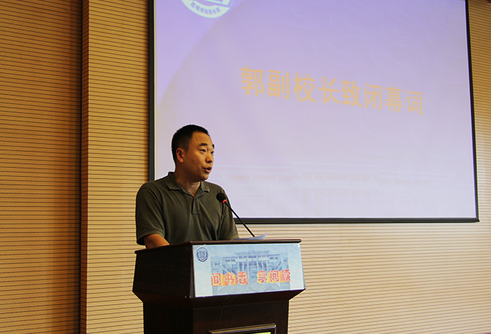 郭副校长致闭幕词并指出:读书日系列活动的成功举办让师生进一步了解和熟悉了图书馆,营造了浓厚的读书氛围,促进了图书馆利用率的提高。今天建设创新型国家和学习型社会的时代任务,比以往任何时候都需要营造一个书香浓郁的社会,阅读作为推进社会发展的力量是不可取代的。相信本届读书活动的成功举办,会让更多的昆院学子爱上阅读,让无处不在的阅读成为学校一道靓丽的校园风景。
