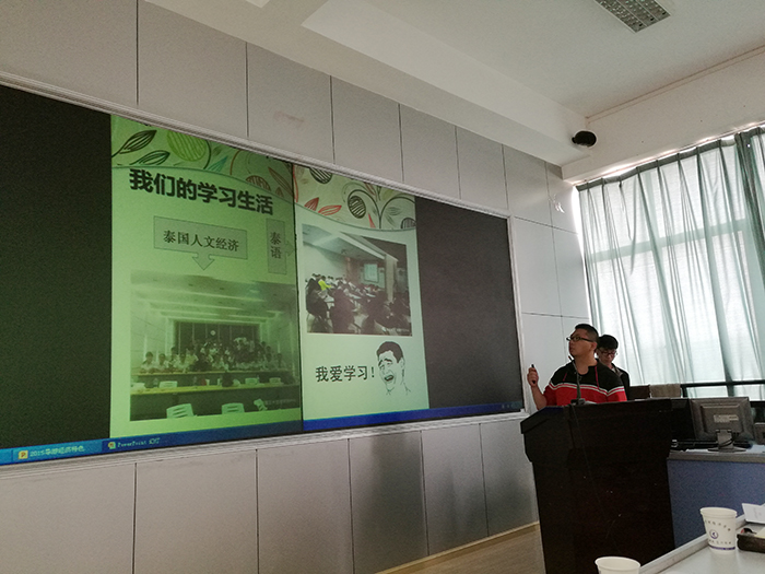 赴泰学习交流的学生代表分四组分别对泰国的文化传统、企业参观和泰语学习、正大集团以及日常生活的各个方面进行了汇报,图文并茂地展示了同学们为期两个月的收获与感想。