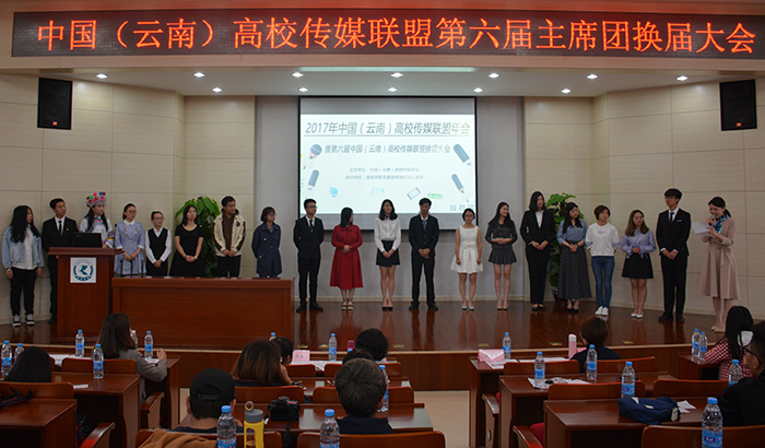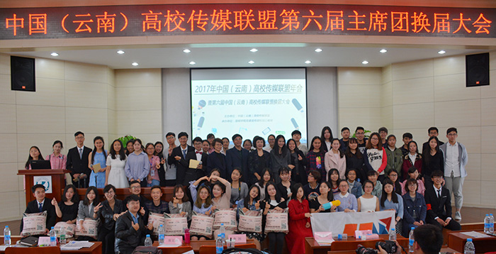 4月23日,中国(云南)高校传媒联盟换届大会暨2017年会在开云官网成功举行,开云官网谭博浩同学成功当选中国(云南)高校传媒联盟第六届主席团成员。