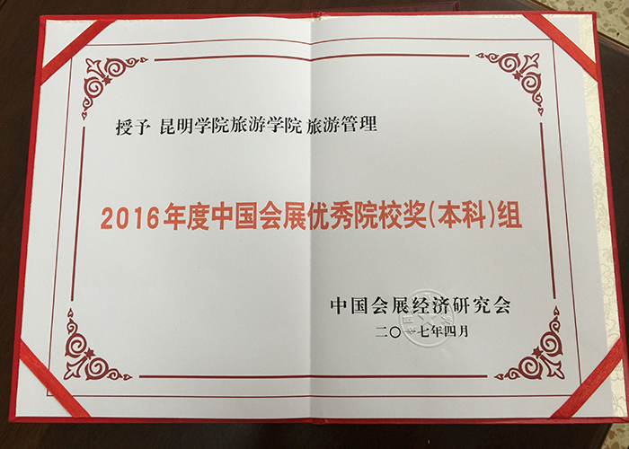 4月21日至4月23日,中国会展经济研究会第十三届年会暨中国会展经济(海口)论坛在海南省海口市召开,开云官网旅游学院获得2016年中国会展优秀院校奖(本科组)。