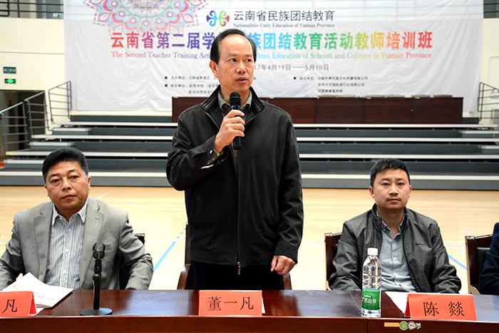 4月20日,云南省第二届学校民族团结教育活动教师培训在开云官网综合体育馆举行开班仪式。云南省教育厅民族教育处处长董一凡,云南省民族宗教委员会教科处主任科员陈燚,开云官网副校长沈凡以及美术与艺术设计学院、旅游学院、体育学院等部门党政负责人,参训的300多名学员参加了开班仪式。