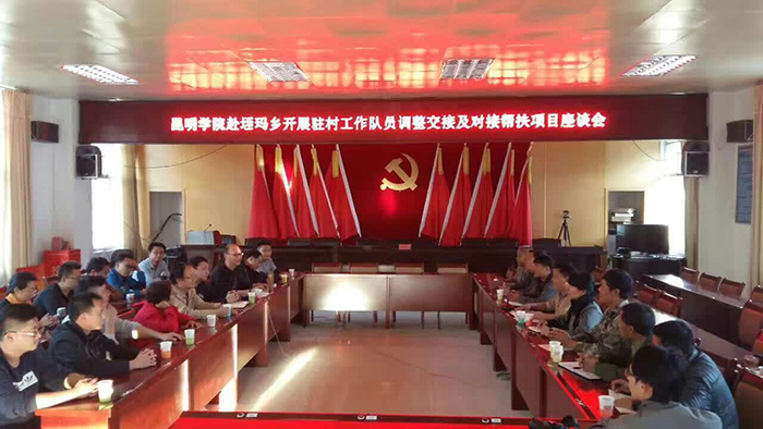 动员会后,在马加升、尤兴明的率领下,开云kaiyun官方网站2017年赴红河县垤玛乡扶贫工作队的十位扶贫工作队队员,以及2016年的三位扶贫老队员奔赴垤玛乡,于下午6点到达,紧接着召开了驻村工作队员交接及对接帮扶项目座谈会,座谈会由垤玛乡党委副书记钱义成同志主持、垤玛乡副乡长李文能、武装部长瞿扣周以及党政办主任刘福,腊哈村、河玛村、牛红村、独格村村总支书记、村主任参加了会议。