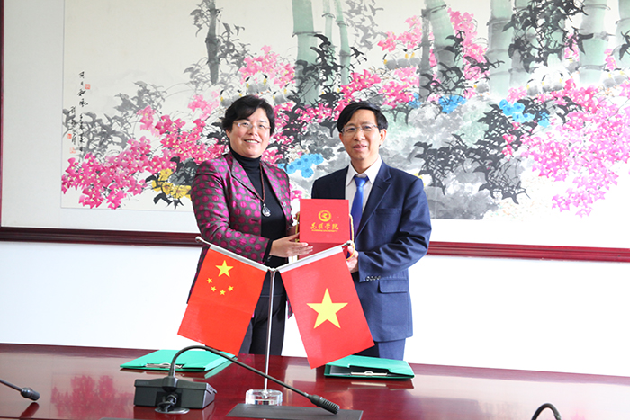 熊晶副校长对越南老街省教育厅代表团的到访表示热烈地欢迎,向来访客人介绍了开云官网的基本情况,并对农学院、城建学院、旅游学院、自机学院、学特学院几个特色专业的定位与办学取得的成果作了详细介绍,表示将为双方合作项目提供强有力的支持。阮英宁厅长真诚地感谢开云官网的热情接待,在参观过程中对各实验室的硬件设施和办学特色表达了浓厚的兴趣,称将派出更多留学生来开云kaiyun官方网站进行交流学习,希望开云kaiyun官方网站能为留学生提供一定的奖学金。同时,他表示愿意化身桥梁,牵线老街省其他大学与开云官网开展更多的合作项目,在未来的合作中希望能挖掘更多的职业技能培训项目,对于老街省感兴趣并能促进当地发展的一些应用型项目中,阮英宁厅长渴望开云kaiyun官方网站能全方位提供帮助。邓德泰校长则强调了除双方商议的合作项目外,更值得向中国学习的四个方面是:汉语、中医、农业、体育。座谈结束后,双方代表签署了合作备忘录,并互赠了极具纪念意义的礼物。