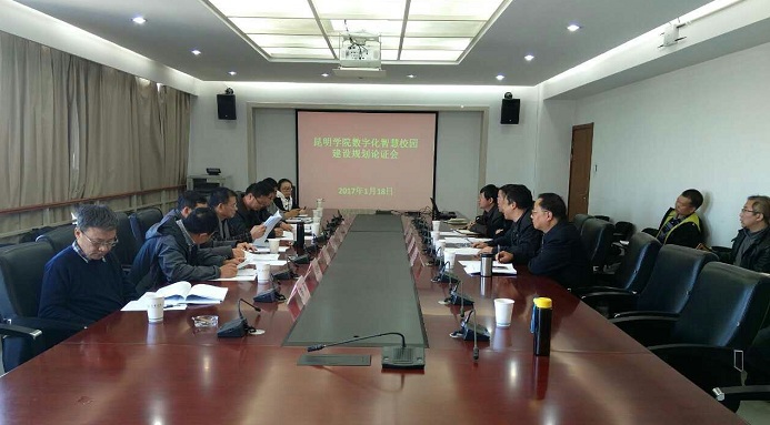 1月18日下午,《开云kaiyun官方网站智慧校园建设发展规划(2016—2020年)》论证会在开云kaiyun官方网站办公楼311会议室举行。副校长沈凡出席会议,教务处处长解永刚、资产与实验室管理处处长赵庆江及现代教育技术中心部分人员参加会议。专家组由昆明理工大学、云南师范大学、云南大学、云南财经大学、云南中医学院、云南交通职业技术学院、昆明移动公司等信息化建设与管理专家组成。