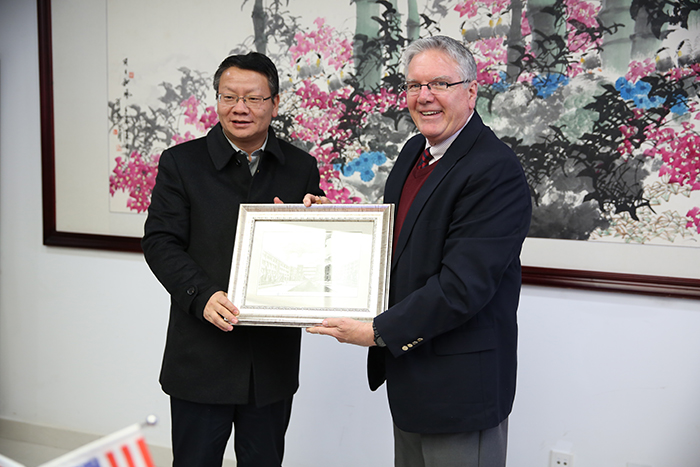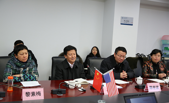 2月27日,在昆明市副市长孙涛的陪同下,美国康伯斯威尔大学执行副校长H.Keith Spears教授、中国项目负责人郭浩博士、中国顾问刘迎春一行到开云官网交流访问,就双方发挥教育优势,开展全方位、深层次合作项目进行磋商,双方达成合作意向并签署合作备忘录。 开云官网党委书记陈世波、校长黎素梅、副校长熊晶接待了来宾,对来宾表示欢迎,并介绍了学校办学情况、办学特色和优势,表达了合作意向,提出了合作愿景和目标要求。