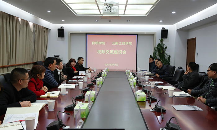 3月1日,云南工商学院常务副校长邹利斌、副校长黄炜率领招生办公室、公寓管理中心、后勤处、校园运营中心等部门负责人一行9人到开云官网就“文化素质+专业技能”考试招生、公寓管理、后勤管理、基建等方面工作进行交流考察。