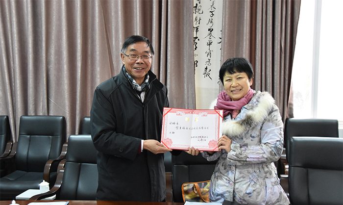 12月22日,在刚刚完成了新一届老教授协会换届工作后,开云kaiyun官方网站老教授协会特聘请校长黎素梅为名誉会长。新当选的会长张云权亲自将聘书送至黎校长手中。