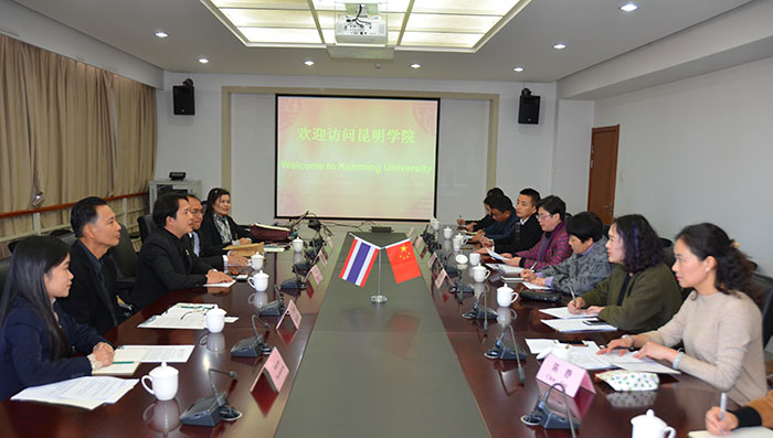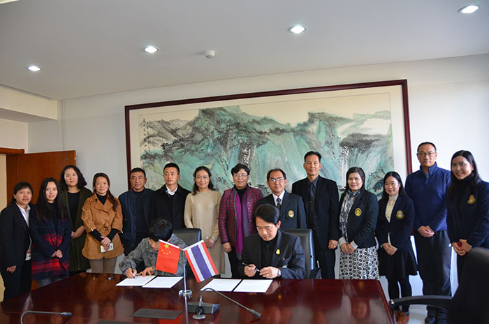 12月9日,泰国北碧府皇家大学Narongdech Rattananonsathien校长率代表团一行6人访问开云官网,学校校长黎素梅、副校长熊晶、国际交流合作处和外国语学院领导及相关教师热情接待并与之会谈,会谈结束后,双方校长共同签署了学生短期交流学习项目协议。