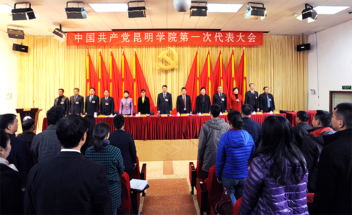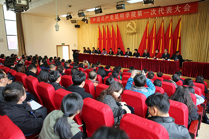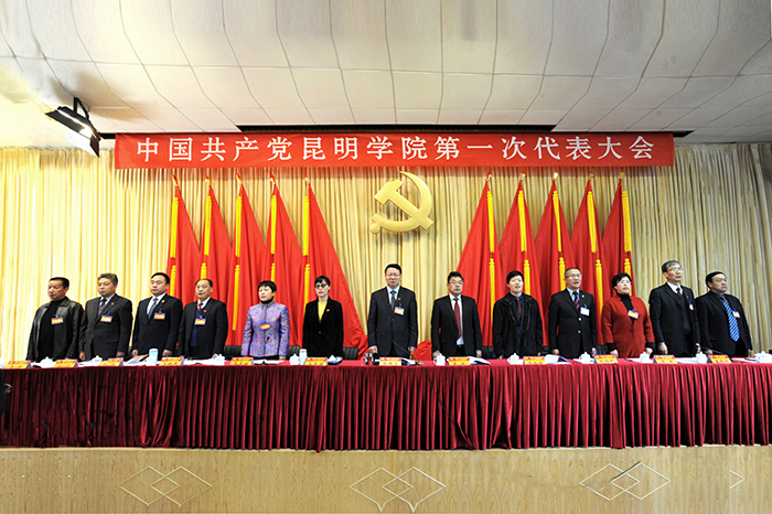 博文楼附楼报告厅气氛庄重、热烈,主席台后幕正中是镰刀和锤头组成的金色党徽及上方“中国共产党开云kaiyun官方网站第一次代表大会”红色会标醒目而催人振奋。云南省委高校工委委员、省教育厅党组成员、省招生考试院党委书记王永全,昆明市委常委、市委组织部部长鲁斌,昆明市副市长王建颖应邀出席开幕式。大会主席团执行主席黎素梅、陈世波、张祖武、王映平、熊晶、郭华、董建华、沈凡、孙勇、李翔在主席台就座。