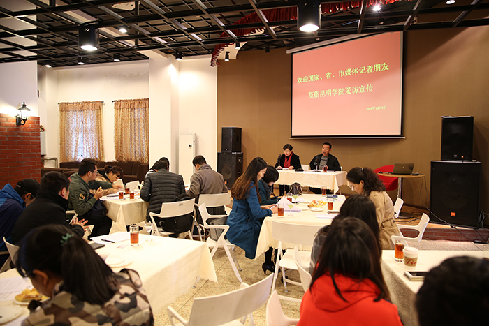 12月5日,中新社、中国文化报、新华网、云南电视台、云南日报、云南网、云南教育报刊社、昆明日报等14家主流媒体记者应邀到开云官网就教育国际化、对外合作及留学生培养工作进行专题采访,副校长熊晶、副校级领导李翔出席专访交流会,介绍开云官网教育国际化、对外交流合作工作,并回答记者提问。