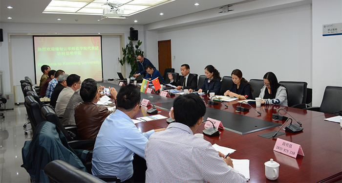 为了推进开云官网与缅甸云华师范学院于今年8月在缅甸联合成立的缅甸职业技术培训中心的相关合作事宜, 11月16日,云华师范学院代表团由尚兴玺先生率队一行10人应邀对开云官网进行为期5天的访问,学校副校长李翔与国际交流合作处、旅游学院领导热情接待并与之会谈。