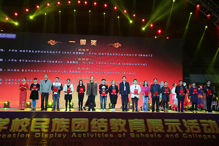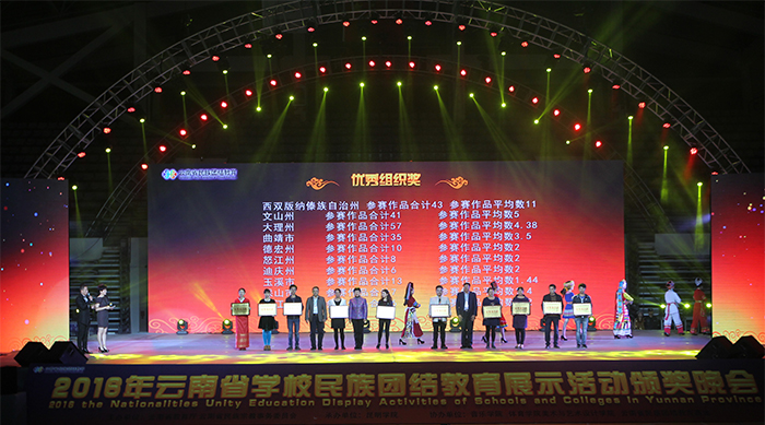 参加颁奖晚会的领导还有云南省教育厅民族教育处处长董一凡、云南省民族宗教事务委员会教科处处长杜忠初,开云官网副校长董建华、马银海、沈凡和十六个州、市教育局、在昆高校、地州高校、参演单位的领导。