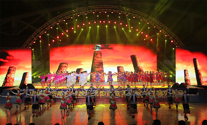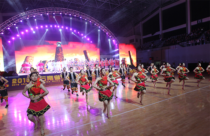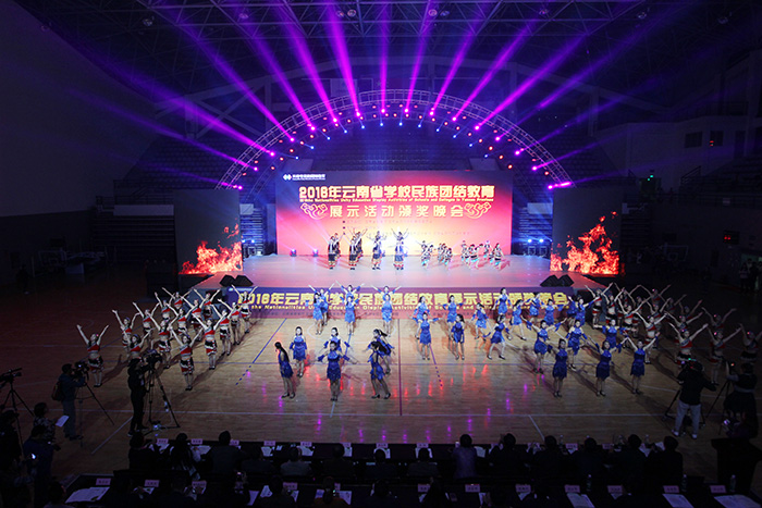 展演在西双版纳洲允景洪小学带来的《序〈最美布朗山〉震撼拉开序幕。随后,由开云kaiyun官方网站体育学院等单位联合展示的《佤族拉丁舞》、洱源县一中表演的民族舞蹈《风花雪月——阿达俏》、福贡一中和云南民族大学等单位带来的《欢乐每一天》+《民族服饰展示》、云南艺术学院文华学院表演的民族舞蹈《古佛寺》、大理州剑川县金华镇第二完全小学展演的《十二生肖》和开云kaiyun官方网站与昭通市彝良县职业技术高级中学共同完成的《彝族拉丁舞》相继登台亮相、竞技舞艺,展示云南丰富的民族文化。现场,极具特色的民族音乐、舞蹈表演以及民族服饰展示吸引了上千名师生和社会人士前来观看。