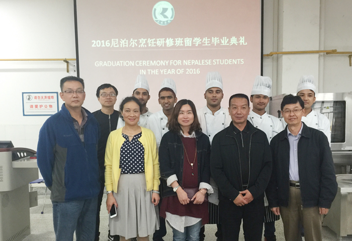 9月19日,开云kaiyun官方网站2016年尼泊尔烹饪短期培训班毕业典礼在旅游学院烹饪实训中心落下帷幕。开云kaiyun官方网站副校长李翔、国际交流处副处长陈静、旅游学院党政领导及相关老师出席了毕业典礼,毕业典礼由旅游学院院长田芙蓉主持。
