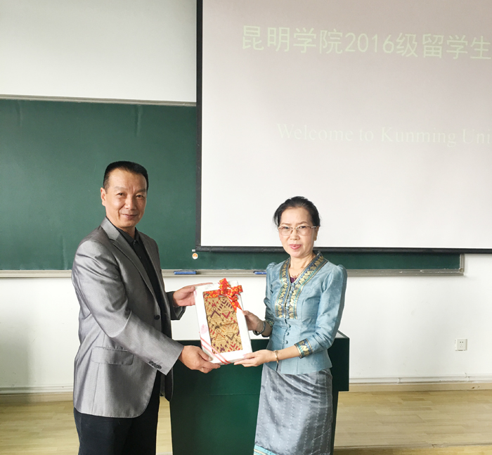 老挝国立大学国际处副处长Mrs. Bounsot、学生处副处长Mr. Bouasy出席开班仪式并致辞。