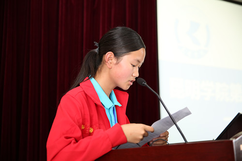 典礼上,小大学生代表和在校大学生志愿者代表分别作了交流发言,谈了体会、讲了收获、与大家分享了喜悦。“我来自大山深处,平时上学要走2个多小时的山路才能到学校,县城也很少去。这些天,我经历了太多的人生第一次:第一次坐地铁、第一次参观博物馆、第一次看3D电影,也第一次见到那么多的书!短短几天的学习,我从中收获的不仅是知识,也开阔了我的眼界,让我交到了更多朋友,感受到了更多温暖。”来自红河县垤玛乡腊哈行政村委会的小学生代表李小芳在结业典礼上向在场的嘉宾分享了她在昆明期间的所见所闻。无数个第一次让这个从未走出过大山的孩子对一切显得那么的好奇。她说,希望自己好好学习,努力考上一所好的大学,将来做一个对社会有用的人。