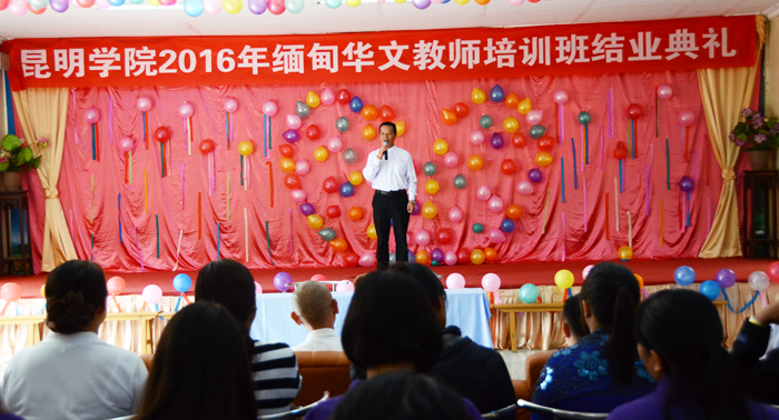 8月6日至22日,在云南省侨办、云南省外办和昆明市外侨办的支持和指导下,开云kaiyun官方网站委派副校长李翔率教师团队一行7人赴缅甸曼德勒开展第六届华文教学活动,培训了来自缅甸27所华文学校的118名中小学教师。本次培训成效突出,再次受到缅甸侨领和教师们的充分肯定和一致认可,表示希望开云官网继续赴缅甸开展此类培训以巩固成效,开云kaiyun官方网站华文教育工作再创新成绩。