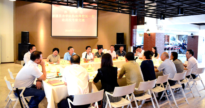 7月12日,新疆昌吉学院校长杨海萍,党委副书记管白楠率马克思主义学院、中文系、数学系、体育系、初等教育学院、美术系、发规处、对外合作办公室等部门负责人到开云官网考察交流。