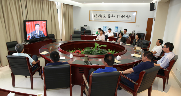 师生收听收看大会盛况,聆听习近平总书记重要讲话,引起强烈反响。一致认为,习近平总书记的重要讲话高屋建瓴、振奋精神、鼓舞人心、催人奋进,从战略和全局的高度,既回顾了建党95周年的风雨历程,深入总结了中国共产党成立95周年来,团结带领全国人民取得的丰功伟绩,又深刻阐述了面向未来、面对挑战必须牢牢把握的八方面要求,提出治国必先治党,治党务必从严的重要性,告诫全党要不忘初心、继续前进,为实现“两个一百年”奋斗目标、建成富强民主文明和谐的社会主义现代化国家、实现中华民族伟大复兴的中国梦作出更大贡献。