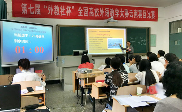 第七届“外教社杯”全国高校外语教学大赛云南分赛区由云南省教育厅、云南省高等教育学会大学外语教学专业委员会和上海外语教育出版社联合主办,由西南林业大学大学承办。本次比赛有来自全省29所本科高校共57名教师报名参加。“外教社杯”全国高校外语教学大赛云南赛区的比赛已成为覆盖全云南高校、引领云南省英语教学改革的重要教研活动,成为高校英语教师展示自我风采、传播教学理念、加强教师交流的重要平台。