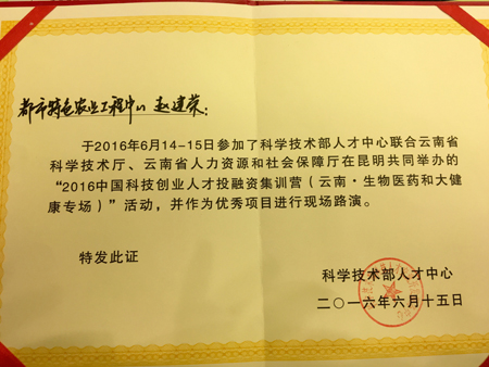 国家科技部人才中心联合云南省科学技术厅、云南省人力资源和社会保障厅于6月14、15日在昆明举办了“2016中国科技创业人才投融资集训营(云南.生物医药和大健康专场)”活动。中国科技创业人才投融资集训营是国家高层次科技创业人才公益性辅导平台。