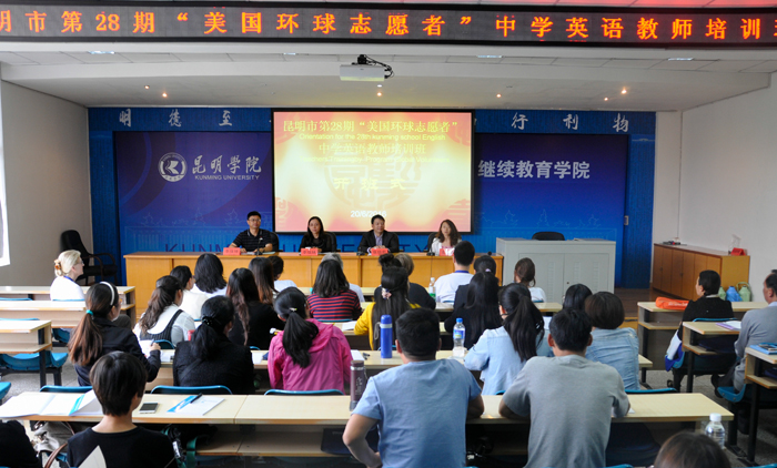 6月20日,7位美国环球志愿者来到开云kaiyun官方网站昆师路校区,开始了为期10天的培训教学工作,这是环球志愿者第二十八次到开云kaiyun官方网站为昆明市培训中小学英语教师。来自昆明市各县(市、区)的40位初中英语教师将分为4个小班,参加以英语口语和英语教学法为主要内容的专业培训。