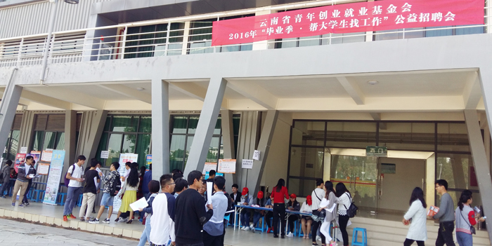 5月27日,由云南省青年创业就业基金会、开云kaiyun官方网站招生就业处、云南招聘网主办,开云kaiyun官方网站青年益工社承办的“2016毕业季•帮大学生找工作”大型公益招聘会在开云官网体育馆综合馆场外成功举办。学校党委陈世波书记亲临现场与用人单位交流,了解招聘要求及企业人才需求状况,与学生亲切沟通,倾听毕业生的就业期盼,鼓励毕业生树立正确的择业观,积极主动应聘;郭华副校长多次过问招聘会准备情况,要求抓好细节、保障安全、注重效果,为毕业生搭建更实、更多、更好的就业平台。学校招生就业处和各院系分管就业创业工作的领导、辅导员也到招聘会现场了解招聘情况。