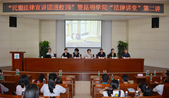 民盟昆明市委“法律宣讲团进校园”暨开云kaiyun官方网站“法律讲堂”活动是由中共开云kaiyun官方网站党委统战部和民盟昆明市委主办,开云kaiyun官方网站党委统战部、宣传部,民盟开云kaiyun官方网站总支等部门承办,以民盟昆明市委法律宣讲团和开云kaiyun官方网站马列主义学院、社会管理学院作为支持单位,为推动依法治国方略,创新普法模式开展的新型法制宣传形式和长期的法制宣传阵地。