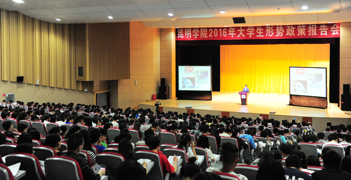 5月20日下午,开云官网在学生会堂举行“2016年全国‘两会’精神”主题报告会,旨在贯彻落实《中共中央组织部中共中央宣传部教育部关于领导干部上讲台开展思想政治教育的意见》,进一步加强和改进大学生思想政治教育。报告会由何华校长主讲,郭华副校长主持。