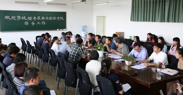 为进一步加强校院沟通,激发院系办学活力,强化“院办校”观念,同时推动深化外语公共课改革,5月25日,校长何华率领学校行政领导班子深入外语学院调研指导工作。调研围绕外语学院“十三五”规划、教学改革、人才培养、队伍建设等工作进行了深入了解和研究。