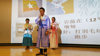 进行上学年度优秀留学生和优秀留学生干部表彰后,开始了紧张的“中国风”汉语比赛决赛。共有三个小组12名选手参赛。分为“个人秀”、“小组秀”、“团队配合赛”、“小组必答”、“个人抢答”五个环节。经过紧张有趣的决赛,经济学院老挝留学生詹达功获得一等奖,人文学院泰国留学生毕妍、城建学院阿富汗留学生荣贺获得二等奖,经济学院老挝留学生罗柯、缅甸留学生岩温在、阿南获得三等奖。