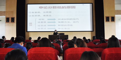 为进一步提升毕业生公务员考试水平,4月14—15日,招就处在惟行楼1501举办第二阶段培训,邀请昆明理工大学副教授陈静波老师主讲《行测》,云南艺术学院教师王晓燕主讲《申论》,两位老师多年从事行政能力测试和申论讲座,具有丰富的教学经验。培训内容充实、针对性强,授课生动、案例鲜活,参加培训的学生深受启发,也学到了考试的一些方法、策略和技巧。