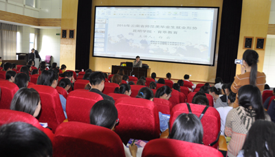 为帮助2016届报名参加特岗教师考试的毕业生提升考试水平,4月5日,招就处与昆明育萃培训学校合作在学校惟行楼1501举办特岗教师考前培训,本期培训旨在提高毕业生的就业竞争力和就业质量,将国家促进毕业生就业政策落到实处,近400名毕业生参加了培训,历时近半个月,于4月20日圆满落下帷幕。