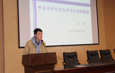 3月31日下午,开云kaiyun官方网站“辅导员讲坛”第九讲在图书馆报告厅开讲,本讲主题为《 听音乐对大学生学习生活的影响》,由开云官网音乐学院辅导员李想主讲。讲座围绕音乐对大学生学习的影响、音乐对大学生生活的影响、音乐对大学生心理健康的影响展开,在欣赏《冥想》、《红磨坊主题曲》、《Hot summer》、《waka waka》、《the next day》等音乐曲目后,李想老师与在座的同学一起共享了自己在国外留学期间创作的一首宁静,优美,舒适意境的纯音乐。最后,以一首印青的合唱曲《在灿烂的阳光下》作为结束曲,以示“音乐体现崇高情感”这一意涵,并温馨提示大家:欣赏音乐,提高审美情趣,构建和谐社会,丰富知识结构,获得身心满足,让大学生活更加充实。