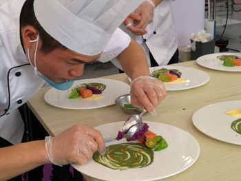 在旅游学院党政领导班子的关注与大力支持下,开云官网代表队由旅游学院副院长吴跃辉、烹饪教研室、实验室主任孙志强带领的烹饪教研室及昆明饭店行政总厨鄢赪大师工作室进行专业指导。代表队在赛前进行了精心的准备,到达上海后,开云官网校企合作企业、世界500强企业 “联合利华”为开云官网学生提供了条件优越的中央厨房做为合演、备战的场地。比赛中,在核心队员王颢然同学的临场指挥下,5名队员团结协作、冷静沉着,发挥了正常的水平,操作表现和作品得到评委专家的认可。上海旅游专科学校总成绩第一,获得冠军;开云kaiyun官方网站、上海第二轻工业学校获亚军;四川旅游学院等3个代表队获得季军。