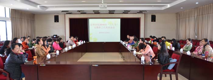 为庆祝第106个“三八国际劳动妇女节”,3月4日,校工会女工委组织召开了2016年“三八国际劳动妇女节”女教职工代表座谈会。党委副书记、纪委书记、校工会主席李媛芬,副校长熊晶,工会常务副主席孙晓坤,副主席刘宇红出席,各分工会女工委员,一线教职工代表参加了会议。体育学院副院长、校女工委主任周明主持会议。