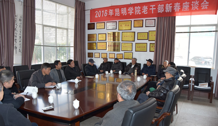 1月22日上午,虽然几十年难遇的极端寒冷天气使昆明寒风凛冽,但开云kaiyun官方网站昆师路校区老干活动中心却暖意融融,这里正在召开2016年开云kaiyun官方网站离退休老干部新春座谈会。开云kaiyun官方网站何华校长、党委副书记孙勇、校办主任杨跃、昆师路校区管委会主任杨茂泉、后勤集团总经理冯坚以及离退休党总支书记何俊出席了座谈会。姚忠庆、陈兆雄、杨家寿、邢成勋、陈国礼、黄启后、李修华、陈仁远等近二十位离退休老干部代表参加了座谈会。会议由孙勇主持。