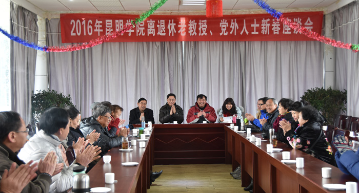 会上,离退休党总支书记、处长何俊受学校党政领导的委托,首先向参加会议的老教授、党外人士代表转达了春节慰问,并通报了2015年离退休工作处一年来的工作情况。他说,2015年离退休党总支继续坚持让党委放心、让老同志满意的工作理念,始终贯彻为党的事业增添正能量,强调一身忠诚跟党走、严以修身度晚年。在学校党政领导和广大离退休职工的关心支持下,离退休工作处取得了较好的工作业绩,获得了昆明市老干工作先进集体的荣誉,受到市委的表彰。离退休工作得到广大离退休人员的高度肯定。接着他将2016年的工作思路向与会人员做了通报。在新的一年,离退休工作处将充分发挥以党员带群众、以党建带群团的形式开展各项活动。以学习十八届五中全会和中国共产党廉洁自律准则和纪律处分条例为主要学习内容。在内部管理上将进一步加强作风建设,继续按处风、处训的要求,服务好全体老同志。
