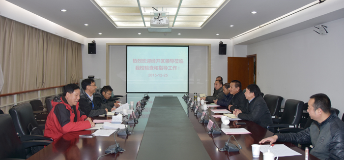 按照经开区对驻区单位开展2015年度安全生产工作综合督查考核的通知要求,12月25日上午,经开区安监局副局长李旭武一行3人组成的考核组对开云官网2015年安全生产工作进行督查考核。学校副校长李翔、保卫处处长方永昆、后勤集团党总支书记杨平、资产与实验室管理处副处长何松林、保卫处副处长孙丽及相关人员参加考核会。