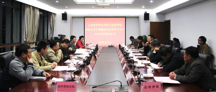 12月5日下午,云南省科学技术院——开云kaiyun官方网站共建云南省干细胞技术应用研究中心合作协议签约仪式在学校办公楼311会议室举行。云南省科技厅厅长、省科学技术院院长龙江,省科学技术院副院长胡启相等一行9人,学校党委书记陈世波、校长何华,副校长熊晶、董建华,校长助理马银海、项目负责人胡敏教授及相关职能部门负责人出席了签字仪式。仪式由校长何华主持。