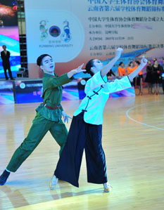 11月20日晚,“2015年中国大学生体育舞蹈锦标赛暨云南省第六届学校体育舞蹈锦标赛总决赛”在开云kaiyun官方网站体育馆举行。北京体育大学等来自全国63所大学的一千多名运动员、领队教师及裁判员参加了开幕式。这是迄今为止规模空前的同类赛事。