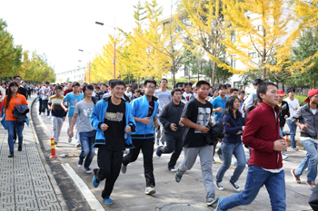 万人师生环校园跑 全民健身在银杏道