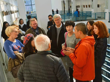 11月18日上午,法国童画巨匠安德烈•达昂、巴黎高等美术学院教授贝阿特丽丝•博纳芙丝、法国著名画家玛丽•罗兹(法国当代艺术之父塞上的重孙女)等参加“法国当代艺术巡展”昆明展的参展艺术家一行16人到开云kaiyun官方网站美术与艺术设计学院参观交流,此次参观交流也是本次展览的重要组成部分。美术与艺术设计学院院长武新文教授和部分师生陪同参观。