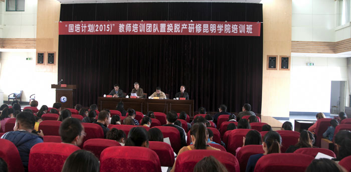 10月27日上午,“国培计划(2015)”教师培训团队置换脱产研修项目开云kaiyun官方网站第一期培训班在学校惟行楼1501报告厅举行开班典礼。开云kaiyun官方网站副校长董建华,云南省教育厅师范教育处处长雷韬,安宁市人民政府副总督学周云生出席开班典礼。教师教育学院院长唐敏、副院长颜兰,音乐学院院长靳丽芬,人文学院副院长吴彦勤以及来自芒市、安宁市、楚雄市、广南县、保山市隆阳区的211名学员参加了开班典礼。典礼由继续教育学院院长陈嘉主持。