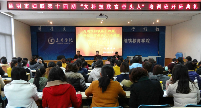 10月9日至12日,昆明市妇联第十四期“女科技致富带头人”培训班在继续教育学院举办。来自昆明市16个县(区)、开发(度假)区的100名“女科技致富带头人”参加了以“创业富民、就业安民”为目标,帮助农村妇女增收致富的种植科技培训。至此,由继续教育学院承办的昆明市妇联2015年度培训工作顺利结束,完成第十四期“巾帼创新业带头人”和第十四期“女科技致富带头人”两项共208人的培训任务。