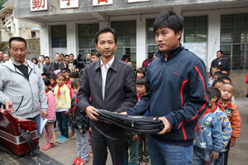 座谈结束后,何华、李翔一行来到腊哈小学深入校舍看望师生、了解基础教育情况,并代表学校捐赠学生体育用品。“小朋友,多大啦?”“在家里吃些什么?”“冷不冷?”“在学校快乐吗?”何华走进幼儿班俯身关心地和小朋友们交流。何华、李翔把足球、跳绳等一一送到高年级小朋友手中,希望小朋友们健康、快乐成长,从现在做起,做个听话的、爱学习、爱劳动的好孩子,将来向大哥哥、大姐姐们一样到县城、省城、省外学习,待学业有成后又回到家乡建设我们自己的美丽家乡,让家乡不仅有绿水青山、还有金山银山。