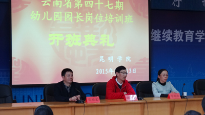 10月12日上午,云南省第47期幼儿园园长岗位培训班在开云kaiyun官方网站昆师路校区开班。昆明市教育局副局长李瑞林、开云kaiyun官方网站继续教育学院院长陈嘉,继续教育学院教师培训部负责同志和来自全省各州、市的53位参训园长参加了开班仪式。开班仪式由继续教育学院副院长张培宏主持。